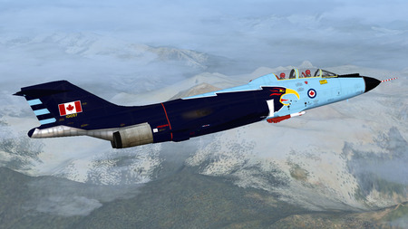 Here are 4 repaints for the Alphasim/Virtavia CF-101B Voodoo, representing three of the 'special' liveries applied to Canadian Air Force Voodoos in their last years of service.They comprise No. 416 Sqdn's White Lynx, 101043, No.409 Sqdn's Hawk One, 101057, and the EF-101B 'Electric Voodoo' of 414 Sqdn, equipped with the electronic warfare suite of the EB-57. The latter was the last Voodoo to fly in 1987. Also included is a repaint of this aircraft after a nose wheel collapse in 1984, when part of the front fuselage was repaired and left temporarily silver.