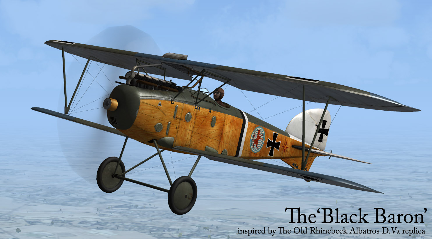 This pack contains repaint for the payware Albatros D.III (Oeffag) by A2A/Aircraft Factory. The repaint depicts the Albatros D.Va replica's scheme of the 'Black Baron' from the Old Rhinebeck Collection. Note, that the Oeffag D.III and Albatros D.Va are completly different planes!
