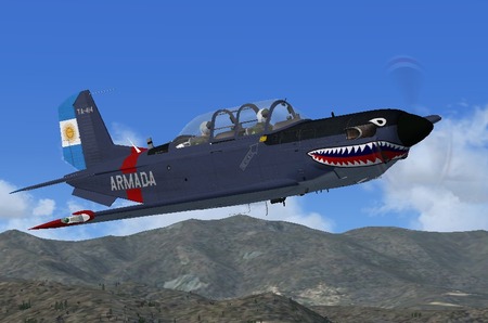 The aircraft represented is a T-34C-1 of the Escuela de Aviacion Naval (Lite), Armada Argentina, Punta Indio AB. These textures are intended for use with the Alpha Simulations T-34C Turbo Mentor payware aircraft package. Original release textures and this Repaint by Frank Safranek.