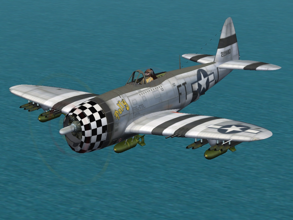 Textures: Original paint scheme by unknown author (Goodwood). It was modified by me to fit this aircraft. I also included some VC bitmap from a X-plane P-47D aircraft (unknown author).