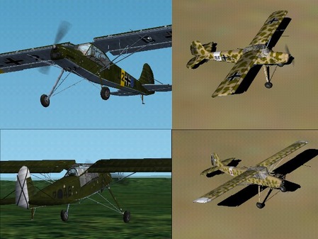 The Fi-156 Storch (stork) was one of the few Luftwaffe planes to be better than any Allied counterpart. Going and living anywhere the German army went, the Storch proved up to any task put before it, whether observation, rescue, liaison, or recon. This CFS2 model has four textures: Luftwaffe (N. Africa), Italian (NA), East Front, and Condor Legion. Model also has full ani's, VC, Panel, and Machine Gun armament. Will work in FS2002/04 with proper sound alias.
