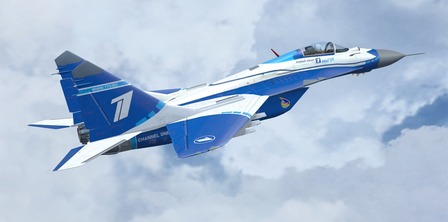 IRIS MiG-29A, RSK MiG manufacturer owned, wearing special scheme for a TV show at russian channel one.