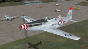 Textures only for Jerry Beckwith's North American F-51H Mustang in the livery a flight leader of the 131st Fighter Interceptor Squadron, 104th Fighter Interceptor Group, Massachusetts Air National Guard based at Barnes Municipal Airport, Westfield, Mass. in 1953.