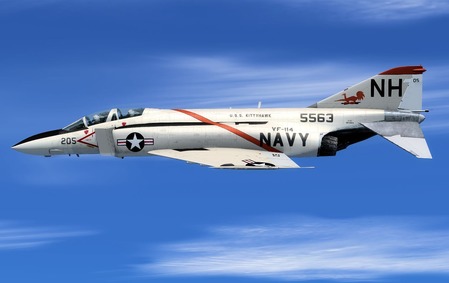 This is a repaint of the Milviz F-4E J Phantom II in the colors of the VF-114 number 205. VF-114's first cruise with the F-4 began in September 1962 as part of CVW-11 on board the USS Kitty Hawk (CV-63). Between 1961 and 1976, VF-114 made five combat cruises during the Vietnam War, shooting down five North Vietnamese aircraft in aerial combat. During this period, the squadron also transitioned from the F-4B to the F-4J series of the Phantom II.