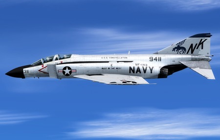 his is a repaint of the Milviz F-4E J Phantom II in the colors of the VF-143 number 311. On 20 June 1962, the unit was redesignated VF-143 and began its transition to the F-4 Phantom. They deployed seven times during the Vietnam War. The squadron was credited with the downing of the first MiG-21 in 1967, lead by R.M. Hooper LtCmdr; call sign: "Pacer". This is number 311. Thanks to Milviz for the excellent paint kit.