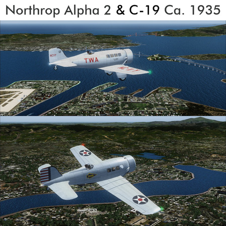 Two textures as well as aircraft and panel configuration options for Chris Herring's Northrop Alpha 2 available at major websites.