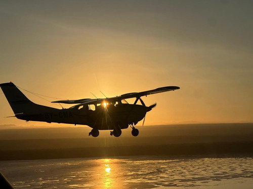 We have a lot of fun in our sims taking pictures of our planes in flight. Got to do that for real last week working on an air-to-air media project and I though it would be fun to post a little of it here. We had two planes (C206 and C208) for the flight. We configured one as the camera ship and set up the film crew in back harnessed in with the cargo door removed. Took some photos and videos around sunset and landed at a remote airstrip just as the sun disappeared. Got up early the next morning, swapped configurations on the two aircraft, and took off for some sunrise and morning shots of the second plane. It was some of the most fun I've had in an airplane. The first shot is mine taken of the photo ship (I was not pilot flying either aircraft on day one). The second is of me flying the photo ship on day two. We haven't seen the professional images yet, but the camera crew said they're going to be great.