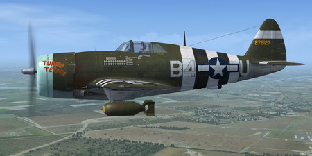 This folder contains a repaint for the A2A Wings of Power III P-47D Thunderbolt, representing P-47D-15-RE 42-76127 B4-U "Turnip Termite". It was the assigned aircraft of Captain Arlo Henry, of Dearborn, Michigan, of the 387th FS/ 365th FG. He had touched the ground with his prop on one of his earlier missions and the ground recovered from his engine on that occasion gave rise to the name 'Turnip Termite' for his aircraft. On 7 June 1944, Lt Joseph Miller...