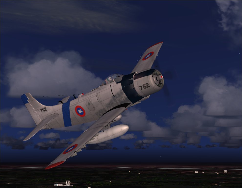 Repaint of RAZBAM's Skyraider A1-D,One of the ex French D's supplied to Cambodia. These are the altered textures only, you will need the Razbam Skyraider's vol 2, from http://www.razbam.org/ Painted utilising the Razbam Paintkit. Should work in fsx although not tested, as I don't have it installed.