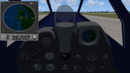 Work continues on the Sky Shark albeit at a slow pace. As I stated a few weeks ago, this will be my last FSDS model. I am using over half the time I allocate to design to learn the ins and outs of Gmax. I have finally got Dietmar Loleit's ARS4 radar installed and working in both a panel and the VC. (See pic below) This took some doing since adding this gauge to the panel .cfg and manipulating with FS Panel Studio would cause that program to immediately crash. Finally developed a work around which I will describe in the Sky Shark readme. The exterior is 95% done just need to add some specular shine and the interior is well along.