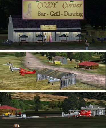 Washington Short Hops, like my Qu?bec and Maine Short Hops, will be a series of close airfields aimed at VFR flying between the nice mountains of Washington. This first series consist of: Cozy Corner, Great Bear Lodge and Bill Calen's Still. All are fictitious and freeware for the basic scenery. You can add lots of candies and life to the scenery by sending a small shareware fee. See the pictures. Details in the download.