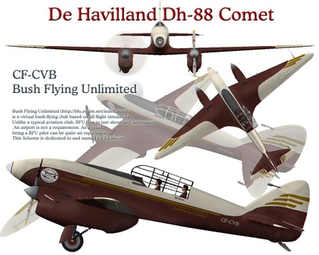 This is a repaint of the default FS2004 De Havilland Comet. Depicted here is a fictional scheme for Bush Flying Unlimited.