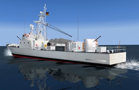 The boats served in the 1970th and 80th in the German Bundesmarine (Navy). The construction was made in Germany but the production was done in Cherbourg and also the export was made from France. The armament consists of 1x76 mm and 1x40 mm gun and 4 MM38 Exocet launchers. The package contains two pilotable versions (solo or with a second boat in formation) and an ai-version...