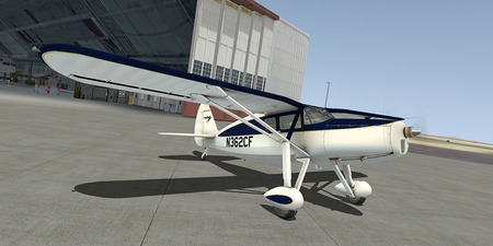 This is a White and Blue Fairchild Ranger repaint, fictional super restoration complete with some pinstriping, metallic blue paint and a nice burled walnut instrument panel.
